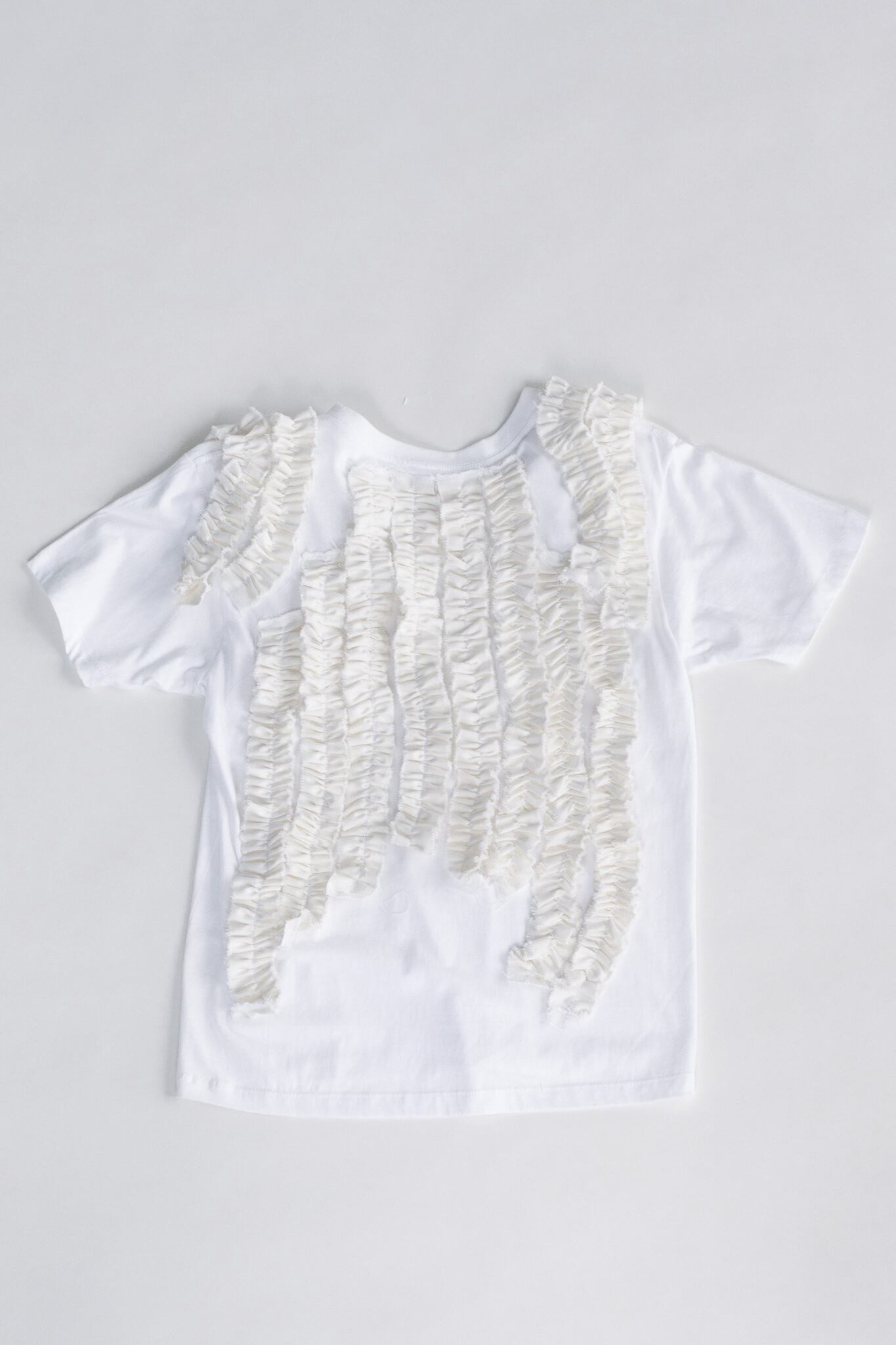 デニムの生地を採用して構築されたTシャツです。人間の襞のようなデザインと身体の動きに合わせて動きを見せてくれる印象的なTシャツになります。